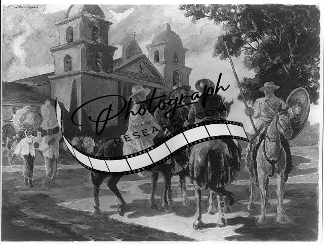 Santa Barbara Mission, Alta Calif,cavalry,c1800