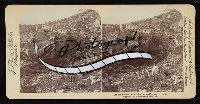 Title: Harvesting at the foot of the noble acropolis, old Corinth, Greece