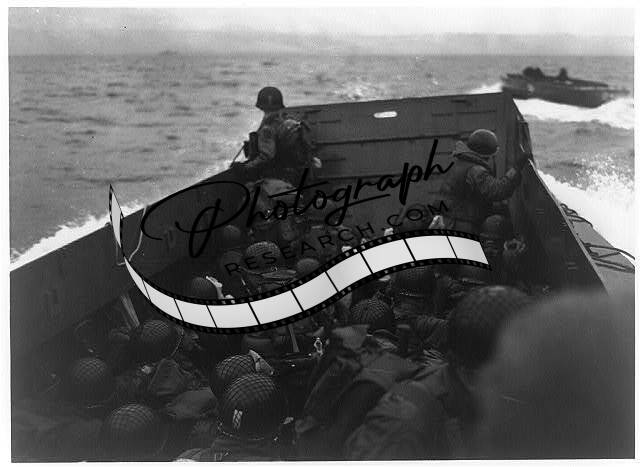 World War,WWII,1944,Helmeted Yankee Soldiers,English Channel,Shores of Normandy