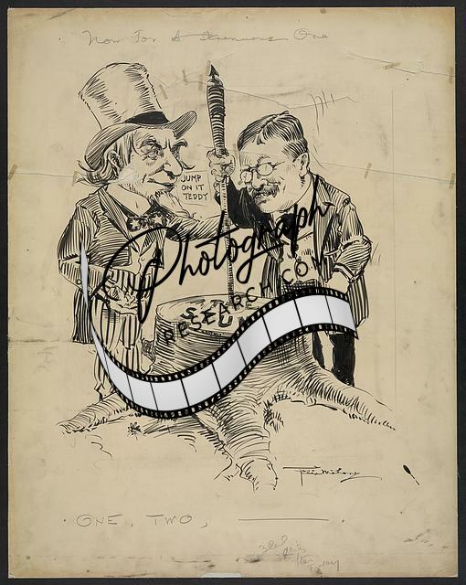 Now for a strenuous one. One,two,Theodore Roosevelt,Uncle Sam,Trees,1902-1907