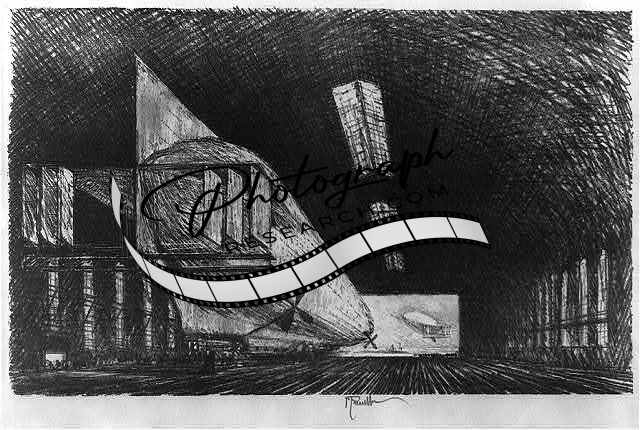 In the Zeppelin Shed,Leipzig,1914,Joseph Pennell,Aircraft
