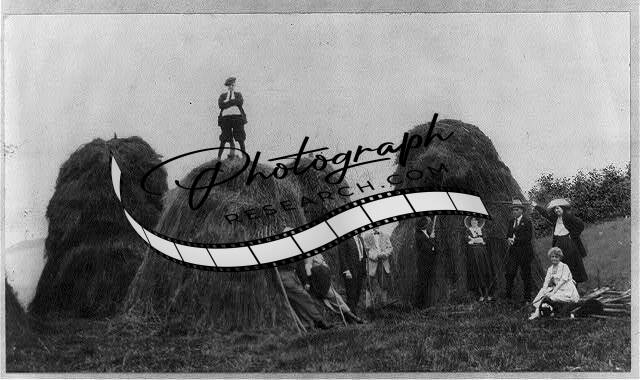 Haying,Elk Hill,PA,Horse-drawn hay rake,wagon,Men,Field