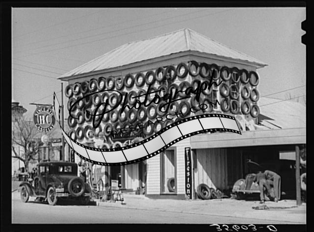 Title: Secondhand tires displayed for sale. San Marcos, Texas