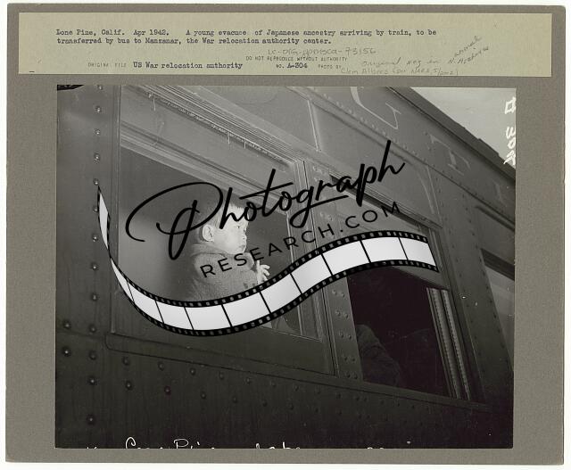 Lone Pine, Calif. Apr. 1942. A young evacuee of Japanese ancestry arriving by tr
