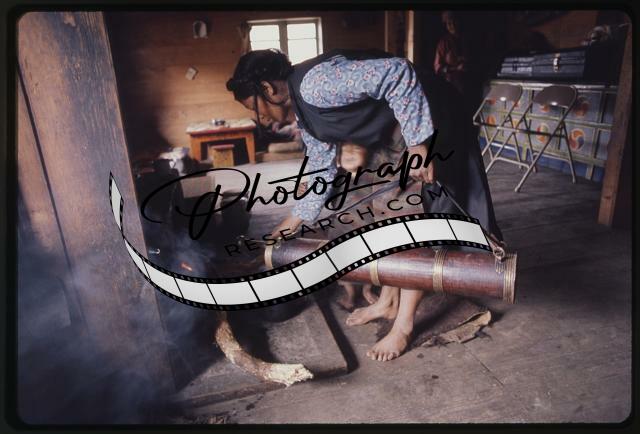 Inside Lachung House,Rinchen's Family,Domestic Life,India,Woman,Churn,Fireplace