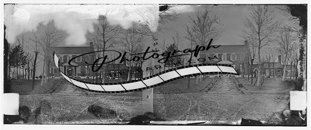 Caption from negative sleeve: Headquarters Genls. Beauregard and McClellan Fairfax Court House June 1863.