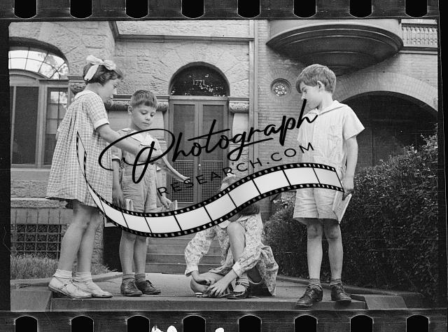 Healthy white children,playing,sidewalks,books,reading,paths,Washington DC,1935 2