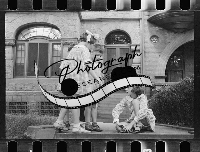 Healthy white children,playing,sidewalks,books,reading,steps,Washington DC,1935