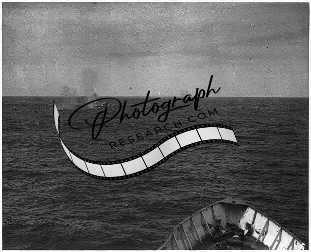 The U.S. Coast Guard cutter SPENCER waiting for her boat to return with survivors from the sinking Nazi U-Boat, seen at the right from the Coast Guard Cutter DUANE