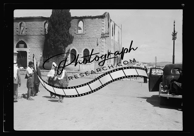 Bethlehem police barracks,post office burned by Arab rebels,West Bank,1938,1