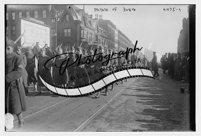 Parade of 308th,military,Bain News Service,soldiers marching,spectators