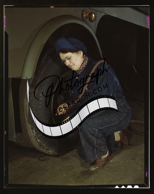 Title: Enola O'Connell, age 32, widow and mother of one child. Ex-housewife, now [she is the] only woman welder at Heil and Co., Milwaukee, Wisconsin