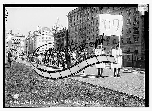 Columbia 1909 students,Zulus,parade,streets,signs,building,Bain New Service,1910