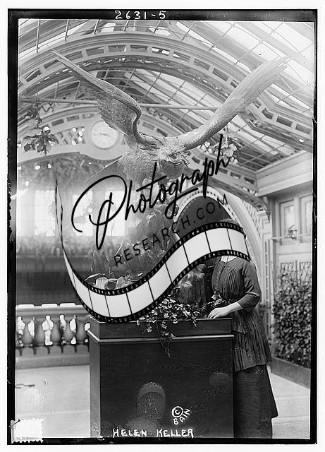 Summary: Photo shows Helen Keller (1880-1968) possibly at the International Flower Show, New York City, April 1913.