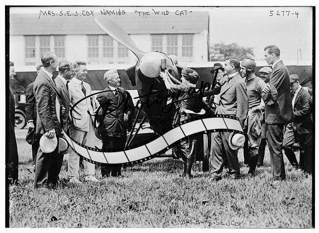 Mrs. S.E.J. Cox naming Wild Cat,wives,women,airplanes,spouses,propellers,pilots