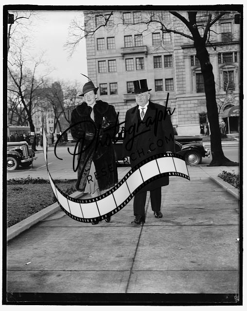 Title: Secretary of Treasury at church services of the president. Washington, D.C., March 4. St. John's Episcopal Church was the scene today of services held in observance of President Roosevelt's seventh inaugural anniversary. This begins his eighth year in the White House. Among those who attended were Secretary of the Treasury Henry A. Morganthau, Jr., and Henry Morganthau, Sr.