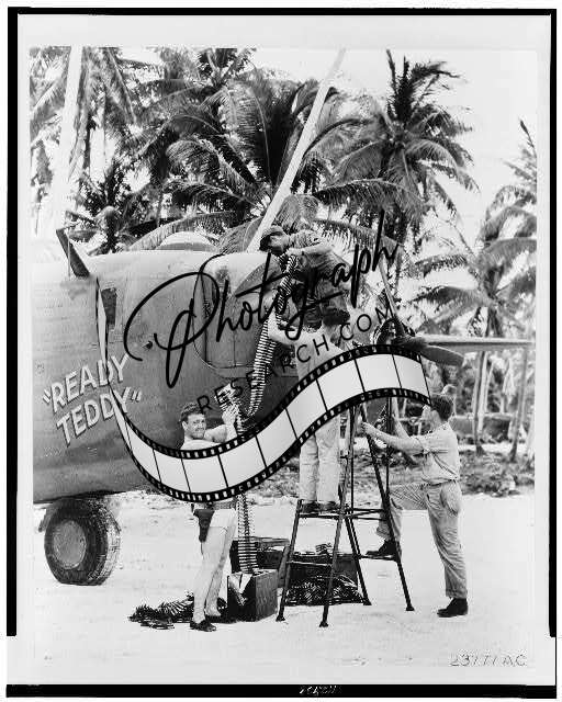 Loading Ready Teddy's nose turret, 1942,B-24 airplane