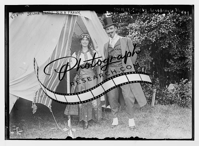 Selma Kraus,H.H. Frank at Society Circus,outside tent,costumed,Long Branch,1909