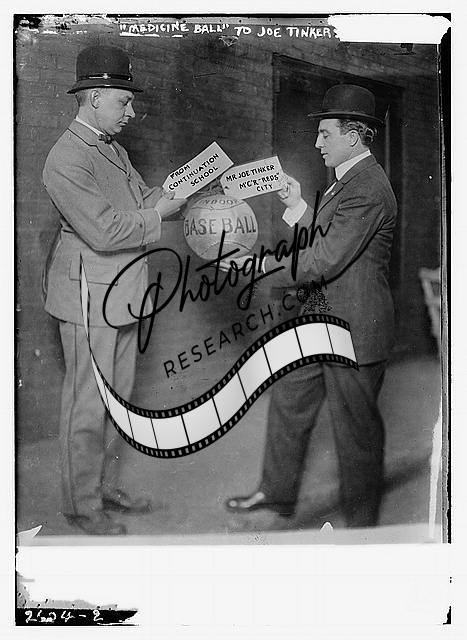 Joe Tinker receiving medicine ball sent by Continuation School 1913,Baseball