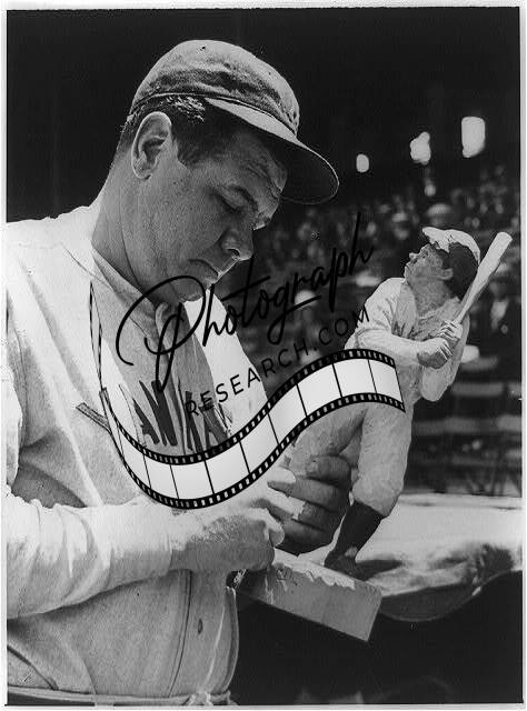 George Herman Ruth,autographing wooden statue of himself,Babe Ruth,1930