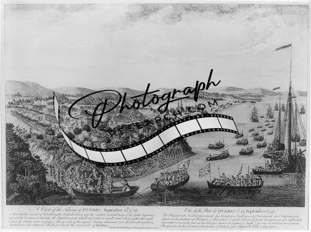 A View of the taking of Quebec,Sept. 13,1759,vessels,shoreline,buildings