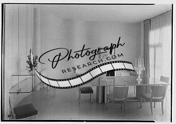 Title: Henry R. Luce, residence on Upper King St., Greenwich, Connecticut. Dining room, to glass shelves