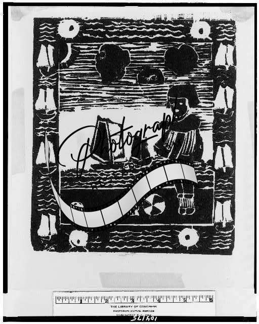 Child,beach,playing,sand,sailboats,linocuts,prints,artwork,Elizabeth Saves,1933