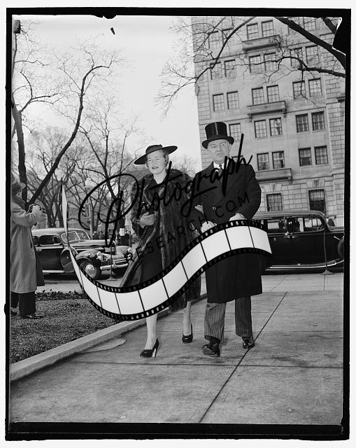 Title: Official Washington observes anniversary of president's inauguration. Washington, D.C., March 4. President Franklin D. Roosevelt today observed the beginning of his eighth year in the White House by attending services at St. John's Episcopal Church. Pictured here are Secretary of Agriculture Henry Wallace and Mrs. Wallace, who were among the many notables in attendance