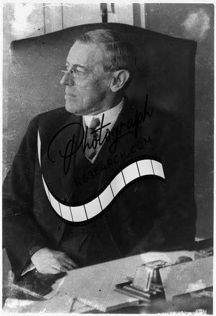 Woodrow Wilson,seated at desk,at one of his first cabinet meetings,President