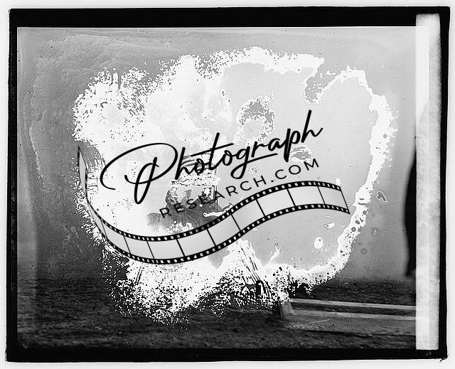 This glass negative might show streaks and other blemishes resulting from a natural deterioration in the original coatings.