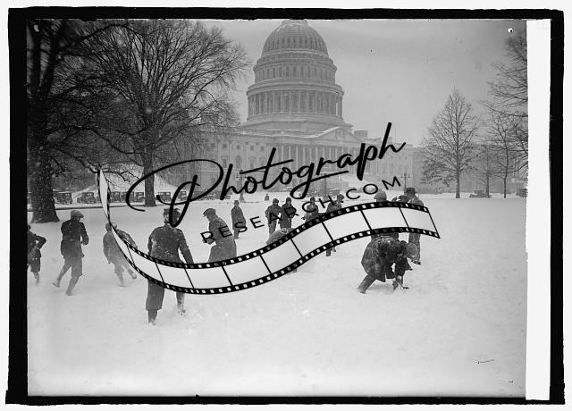 Senate pages in snow ball battle at Capitol,Washington,DC,District of Columbia,1
