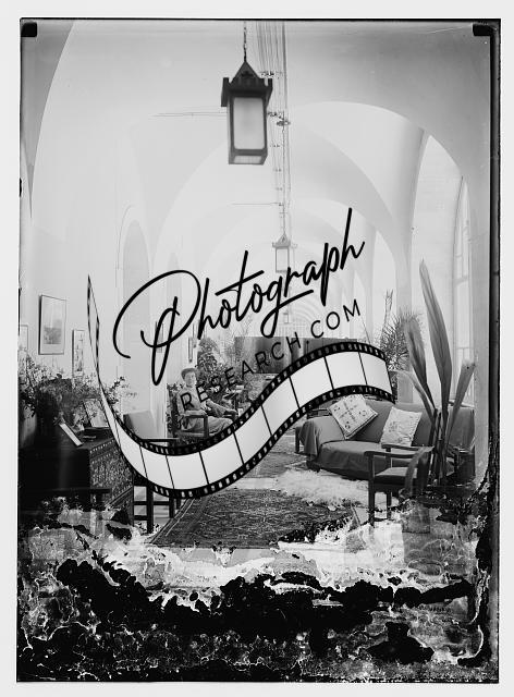 Woman in room decorated with rugs,pictures,Matson Photo Collection,1910-1946