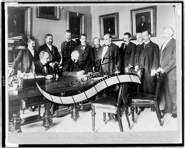 Pierre Cambon signing Peace Protocol,William McKinley,Spanish American War,c1898