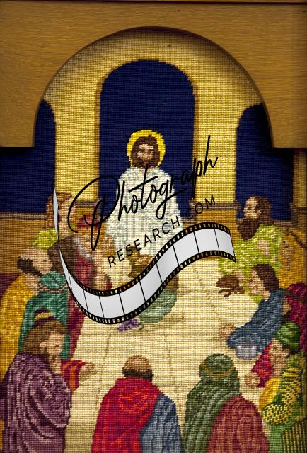 Title: PHOTO ONLY of Cross-stitched art [i.e., needlepoint] located in sanctuary, Highlands Methodist Episcopal Church at Five Points, Birmingham, Alabama