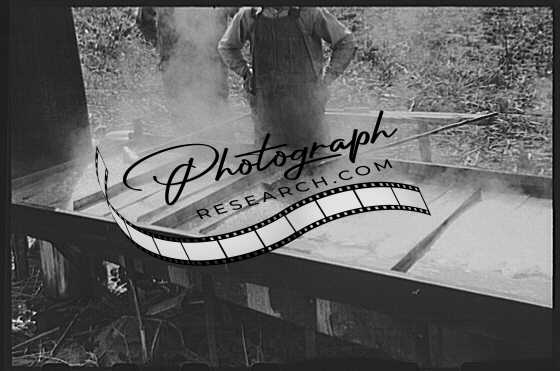 Title: In the early fall during 'syruping off' time many of the children stay home from school to eat the freshly boiled down sorghum cane syrup. The cook usually goes to the various farms in the neighborhood and for his work takes a share of the syrup. On the highway between Jackson and Campton, Kentucky