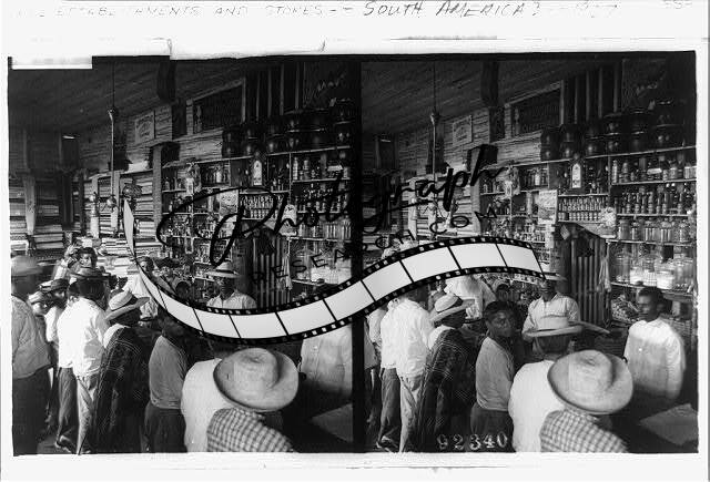 Group,men,boys,store,South America,general stores,shoppers,customers,c1907