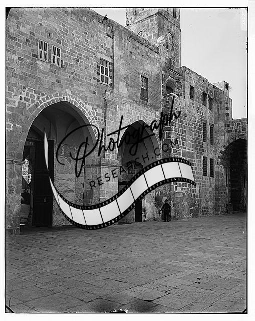 Caption from Catalogue of photographs made by the American Colony ... 1914: 'Jerusalem (El-Kouds). Mosque of Omar from the southwest.' .