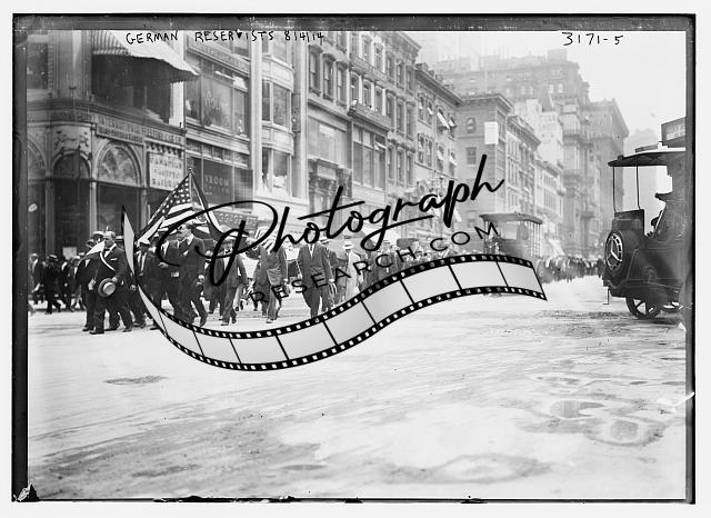 German Reservists in Broadway,August 4,1914,American Flag,buildings 1