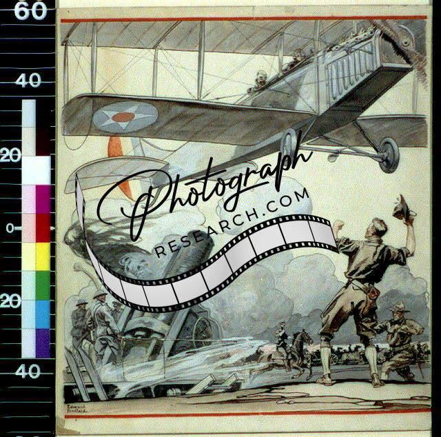 Airplane,artillery gun,soldiers,Edward Penfield,1917,World War,WWI,Military