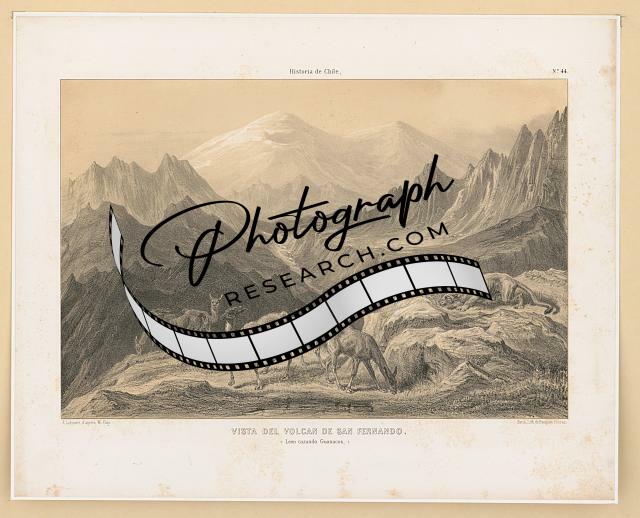 Historia de Chile. No. 44. Vista del volcan de San Fernando. (Leon Cazando Guanacos
