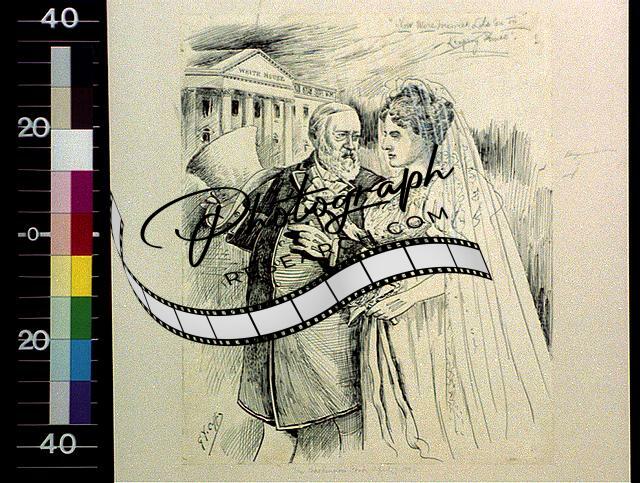 Married,Keeping House,Marriage,Benjamin Harrison,1896,Cartoon,Bride,Groom