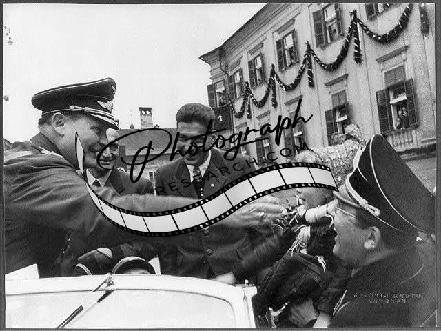 Göring in open car, greeting admirers, Austria