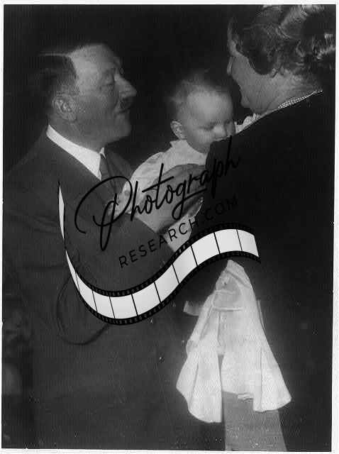 Edda Göring with Hitler while held by her mother Emmy at Hermann Göring's birthday party