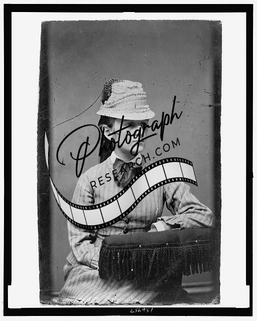 Woman seated,wearing a flower pot hat,1880-1900,Tintype,Portrait Photograph