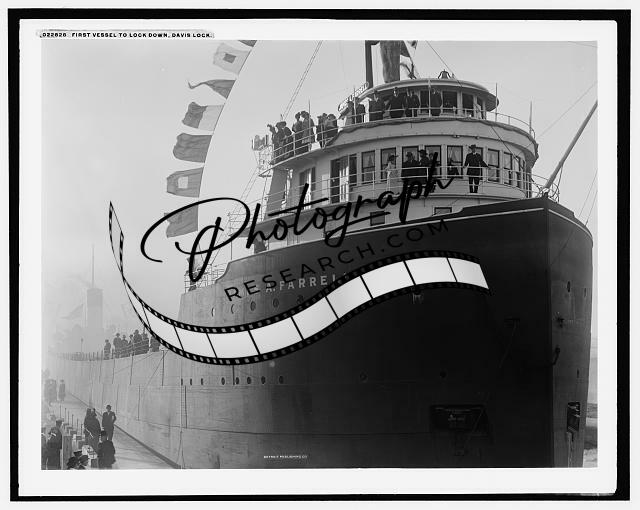 First vessel,lock down,Davis lock,James A Farrell,freighter,cargo ships,MI,1913