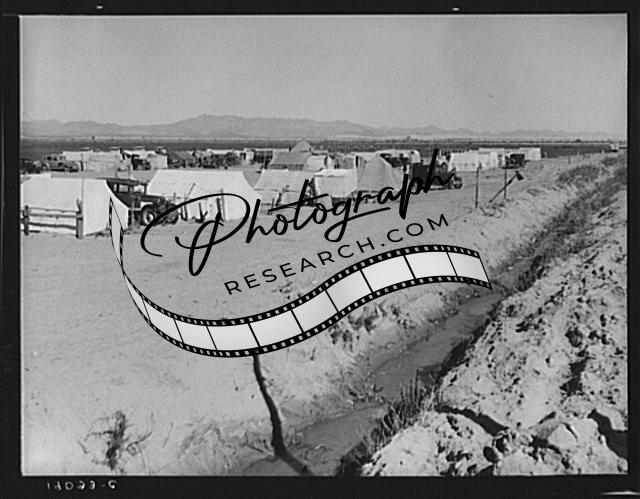 Title: Near Holtville, Imperial Valley, California. Migratory labor housing during carrot harvest. This field owned by proprietor of adjoining grocery store who allows workers to camp here rent-free. Approximately sixty families were living in camp