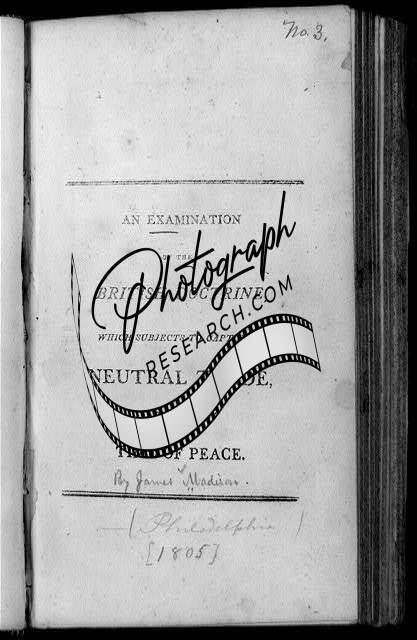 Photo of Title Page,James Madison,1806,Neutral Trade,British Doctrine