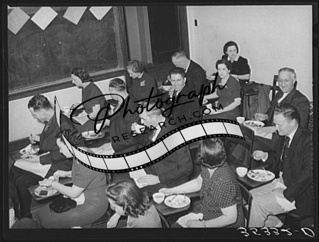 Title: Hostess presenting prize which is a green glass bowl to the winner of a contest. The contest was to determine who could make the largest number of words from the letters in the word 'Washington.' Club meeting was on Washington's birthday. McIntosh County, Oklahoma