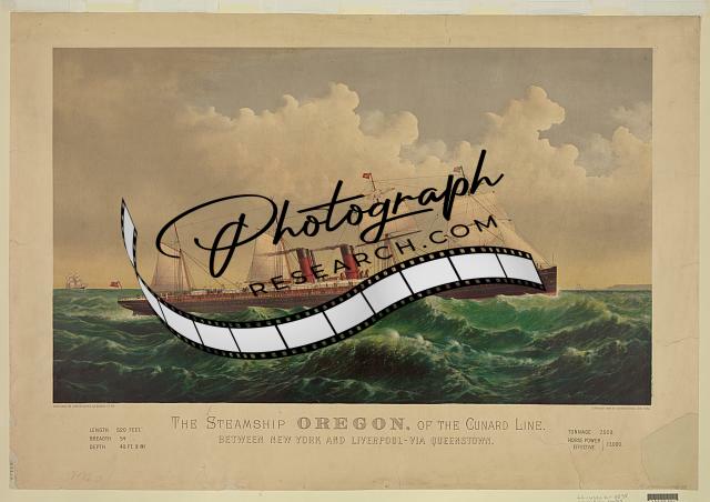 Steamship Oregon,Cunard Line,between New York,Liverpool via Queenstown
