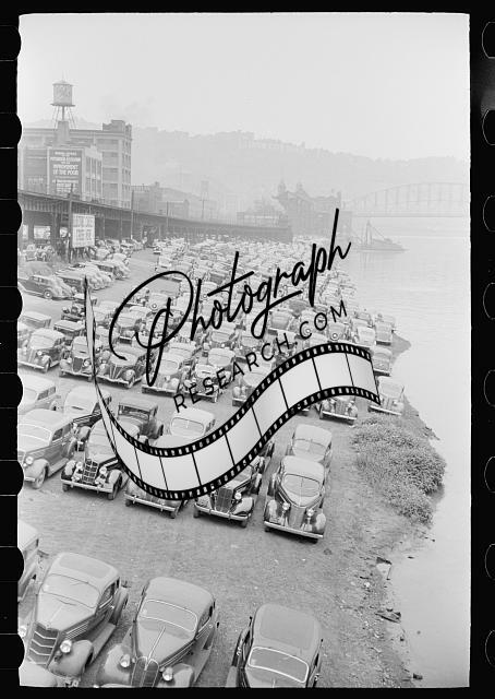 Cars parked along Allegheny River,Pittsburgh,Pennsylvania,PA,Arthur Rothstein,1